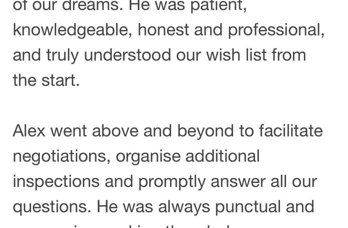 I can definitely say it was a pleasure to be working alongside Alex - a honest and Professional agent throughout our home buying journey.